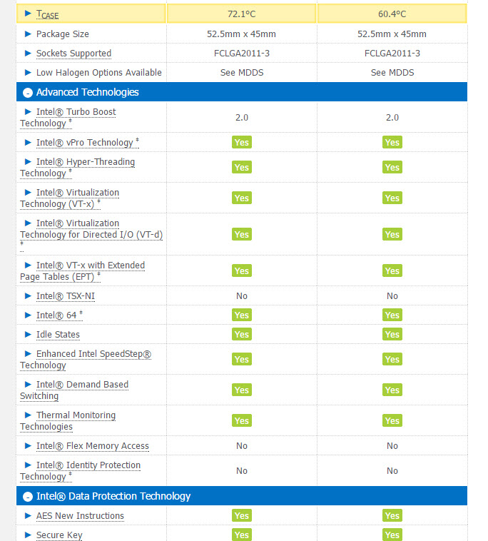 And here where you can see that the E5-2630L V3 runs 12 Degrees cooler, plus other characteristics like Intel VT-x, VT-d…