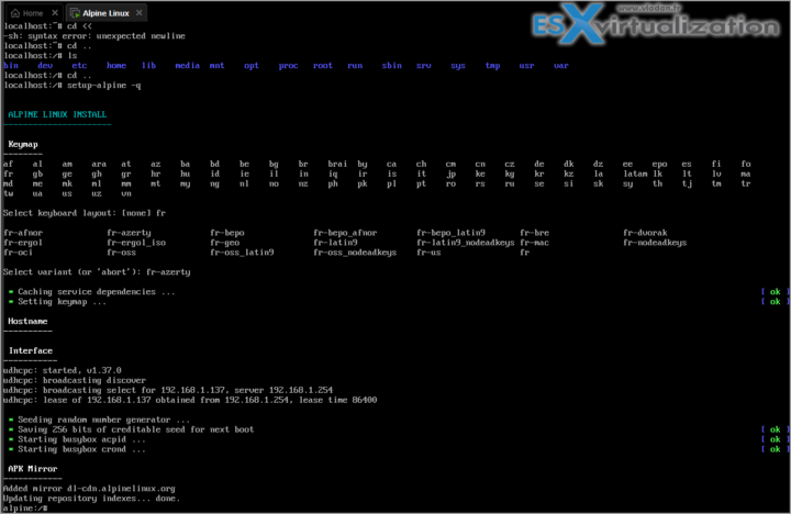 Getting started – it’s actually funInstallation is dead simple, which I really appreciate. Head over to the official site, grab the latest ISO (as of now we’re on the 3.21 series – they release pretty frequently), boot it up, and run the setup-alpine script. It walks you through everything: keyboard layout, networking, disk partitioning, and even lets you choose between diskless or traditional install modes. I went with the standard disk install on a spare SSD and it took maybe ten minutes end-to-end.