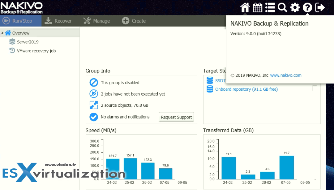 Nakivo claims that this way their software is up to 2X more performant compared to traditional backup infrastructures. It is mostly due to the fact that it bypasses some storage protocols and eliminates bottlenecks, and also, it’s completely separated from virtual infrastructure, so not consume any resources.