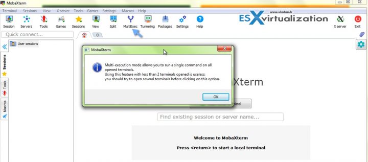 Let's have a look at the user interface first… As you can see, a traditional Windows application. The multi-exec feature is an interesting one as it allows you to execute the same command in multiple destinations. (Imagine connecting to several ESXi hosts, Linux servers etc…).
