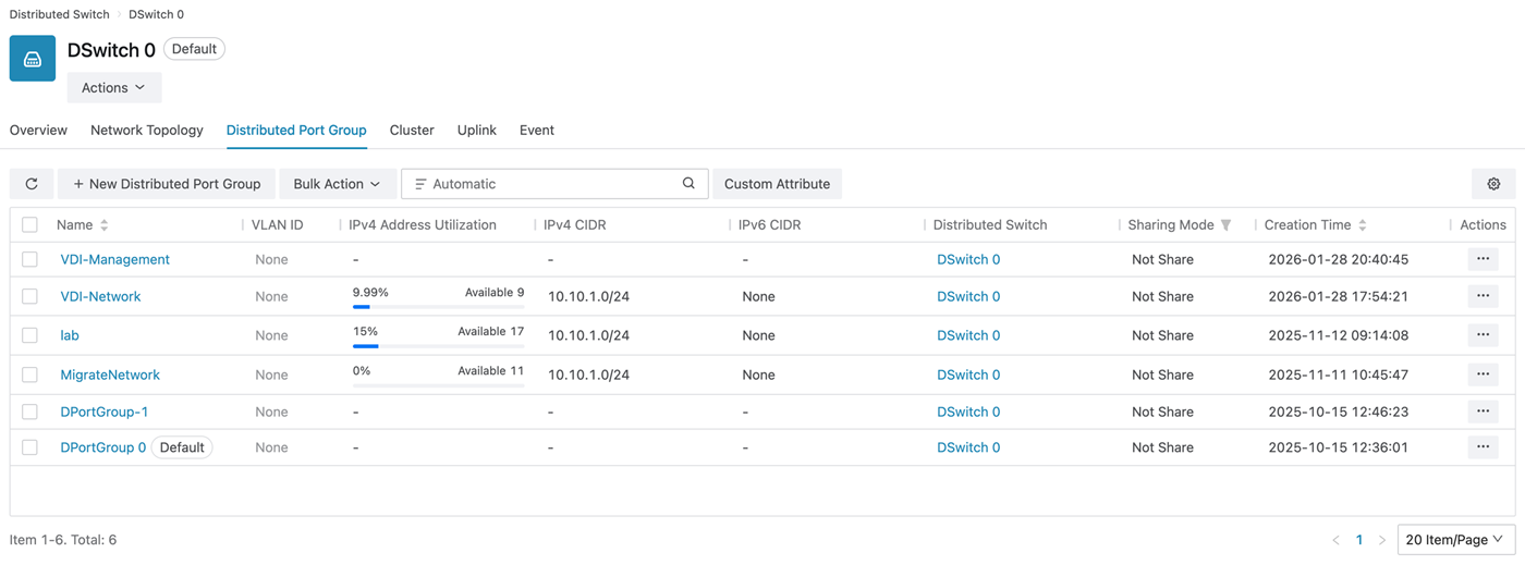 • Distributed virtual switching — Advanced SDN with OVS-DPDK, port groups, VLANs, integrated DHCP/DNS, security groups, distributed firewall, and anti-spoofing.