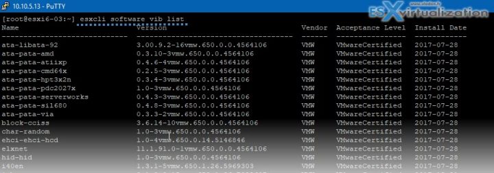 esxcli software vib list