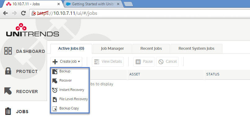 What next? You can setup several jobs for several VMs individually, then check how the jobs are performing through the Jobs TAB on the left hand side (vertical). On the page you'll see horizontal tabs there where the one pre-selected is the Job Manager. There will also be all jobs including the active ones. If you want to check only active jobs, then you might want to click the Active Jobs TAB. There is also Recent Jobs TAB and Recent system Jobs TAB.