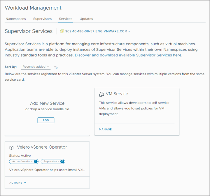 - The Supervisor Service and all of its information is registered with the vCenter system. The service is in Active state.