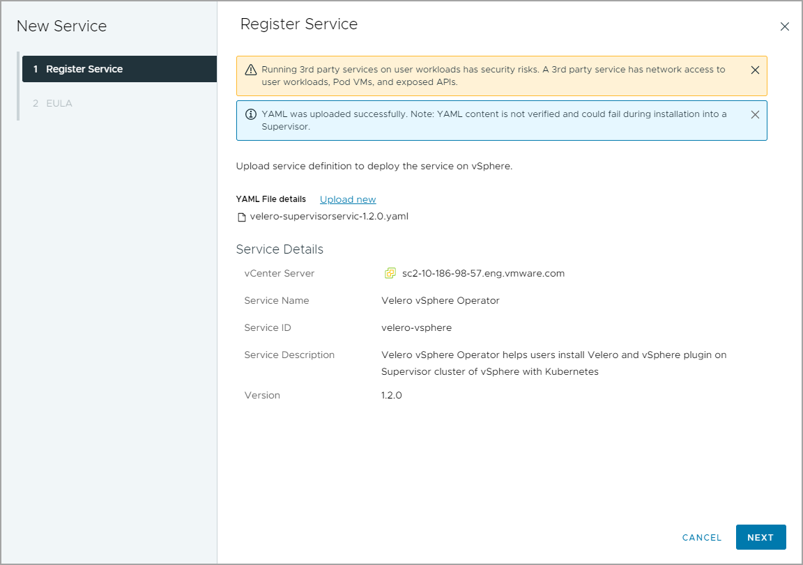 Install the Supervisor Service on Supervisors so that your DevOps engineers can use it in Kubernetes workloads. See Install a Supervisor Service on a Supervisor.