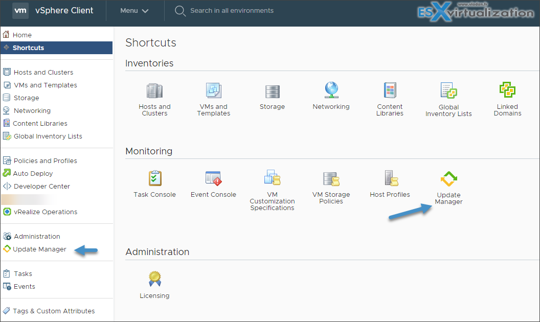 In this post, we'll learn about the latest version of vSphere Update Manager (VUM) present in the vSphere 6.7 U2 recently released by VMware. The tool has been enhanced and improved for usage with HTML5 web client. Previously, not all functions were possible through this client and the use of vSphere web client (Flash) was necessary. Today's post title is VCP6.7-DCV Objective 7.15 – Utilize VMware vSphere Update Manager (VUM).