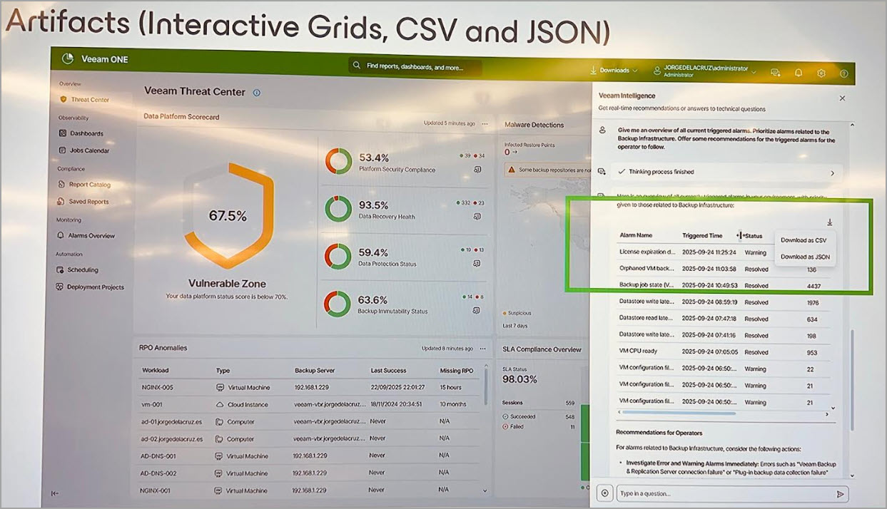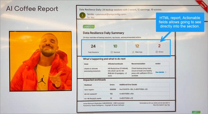 this session is interesting as this technology and AI-powered solution developed by Veeam Software as part of its data resilience and backup portfolio. It leverages artificial intelligence and machine learning to enhance data protection, automate analysis, provide user support, and deliver actionable insights for IT operations, cybersecurity, and compliance. Essentially, it transforms traditional backups into intelligent assets by detecting threats, resolving issues proactively, and enabling data reuse for tasks like mining, development, and testing.