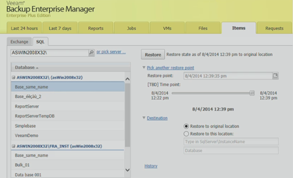 Veeam Explorer for SQL – the same way as Explorer for AD, for Explorer for Exchange or for Sharepoint the Veeam explorer for SQL will allow simple restores of individual databases back to original or to new server. There will also be point-in-time recovery of databases (with down to individual transaction).