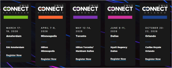 In 2026, VMUG Connects will be hosted in Amsterdam, Minneapolis, Toronto, Dallas, and Orlando to make it easier for VMUG members everywhere to participate. Check out all the locations and register here.