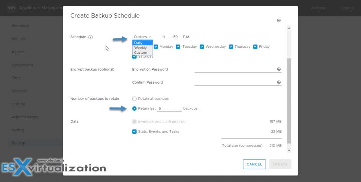 Backup Scheduler is new in vCSA 6.7. It allows you to set up scheduled backups and retention policy.