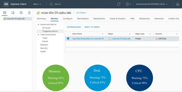 If one of your disks is getting full or you have memory spikes, VMware can show an alert for it (screenshot from VMware).