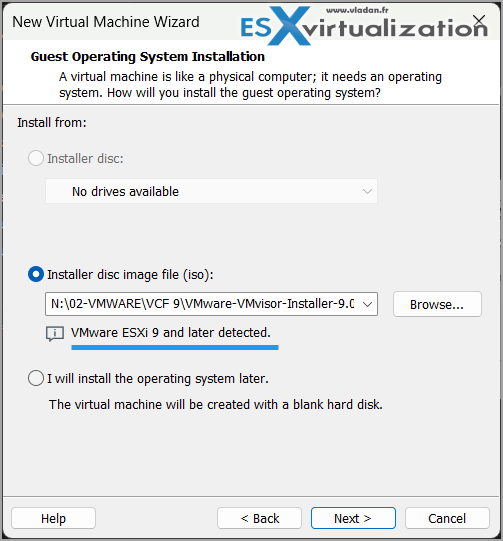 The software now detect the ESXi 9 when presented with the installation ISO. Screenshot from the lab below…