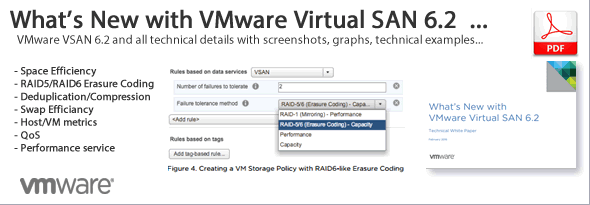 VMware VSAN 6.2 PDF – What’s New with VMware Virtual SAN 6.2. Get your copy from this blog post source below.